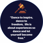 A: “Dance to inspire, dance to freedom, life is about experiences so dance and let yourself become free.