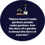 D: “Nature doesn't make gardens; people make garden, and the story of a garden is always the story of a person.