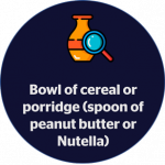 E: Bowl of cereal or porridge (spoon of peanut butter or Nutella goes a long way)