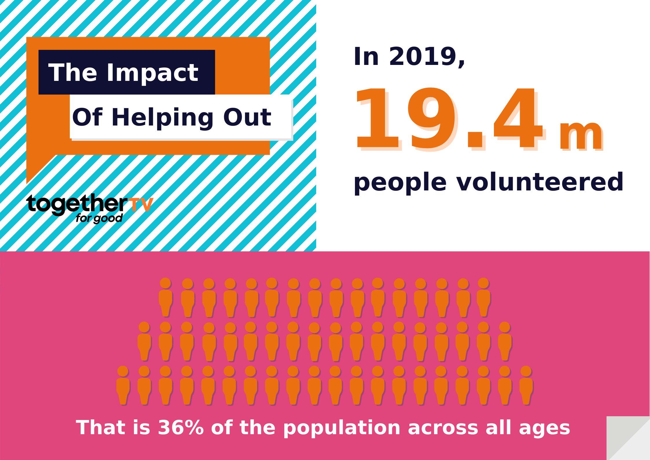 In 2019, 19.4 million people volunteered across Britain. That is 36% of the UK population across all ages.