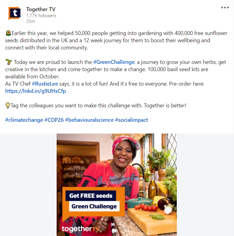 Get your free seeds in the post and join Together TV's Green Challenge!